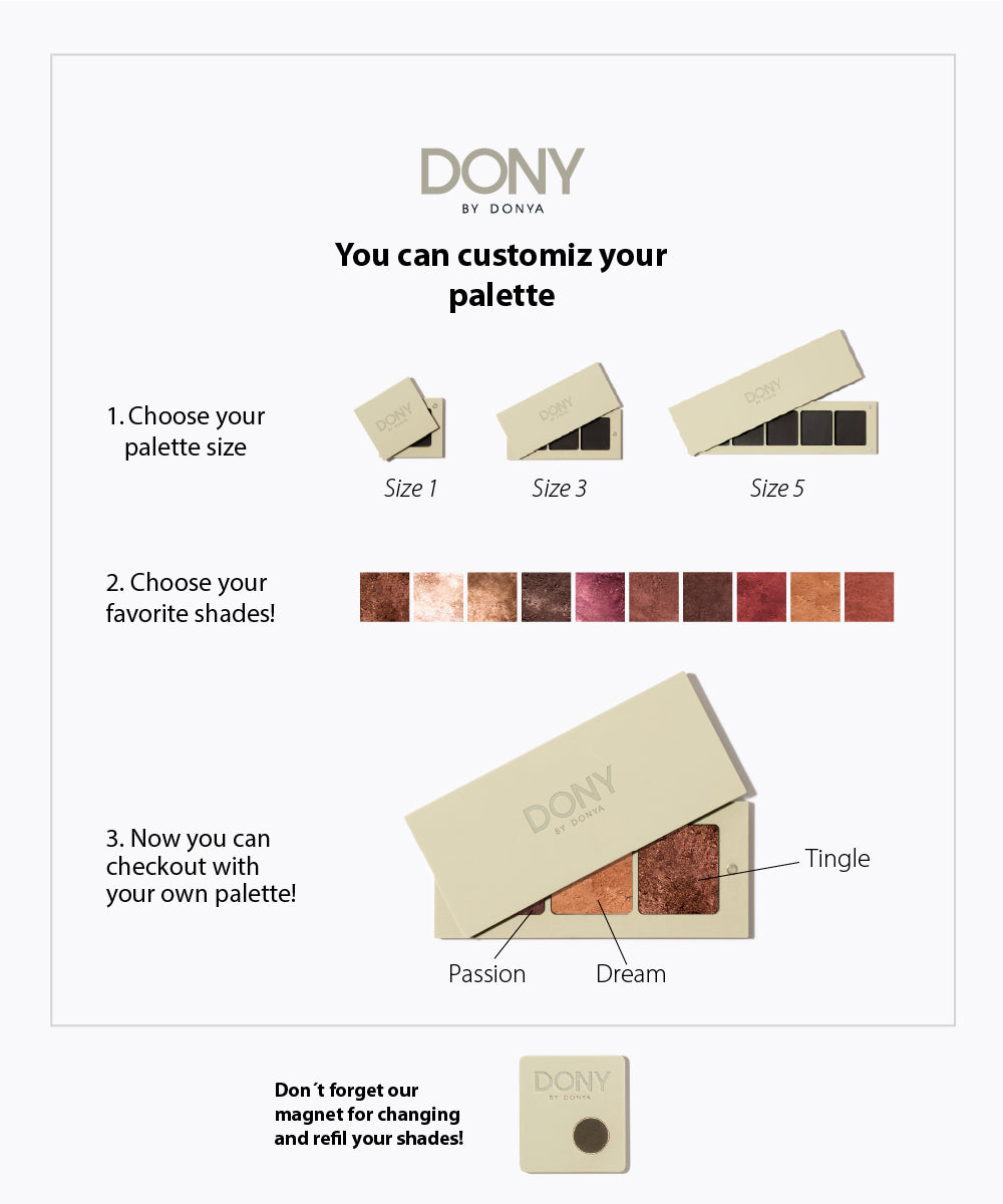 Choose from our refillable magnetic cases, available in 1, 3, or 5 sizes. Designed to let you create your own custom palette by mixing and matching your favorite shades. Swap, rearrange, and refresh your eyeshadows anytime—your palette, your way.